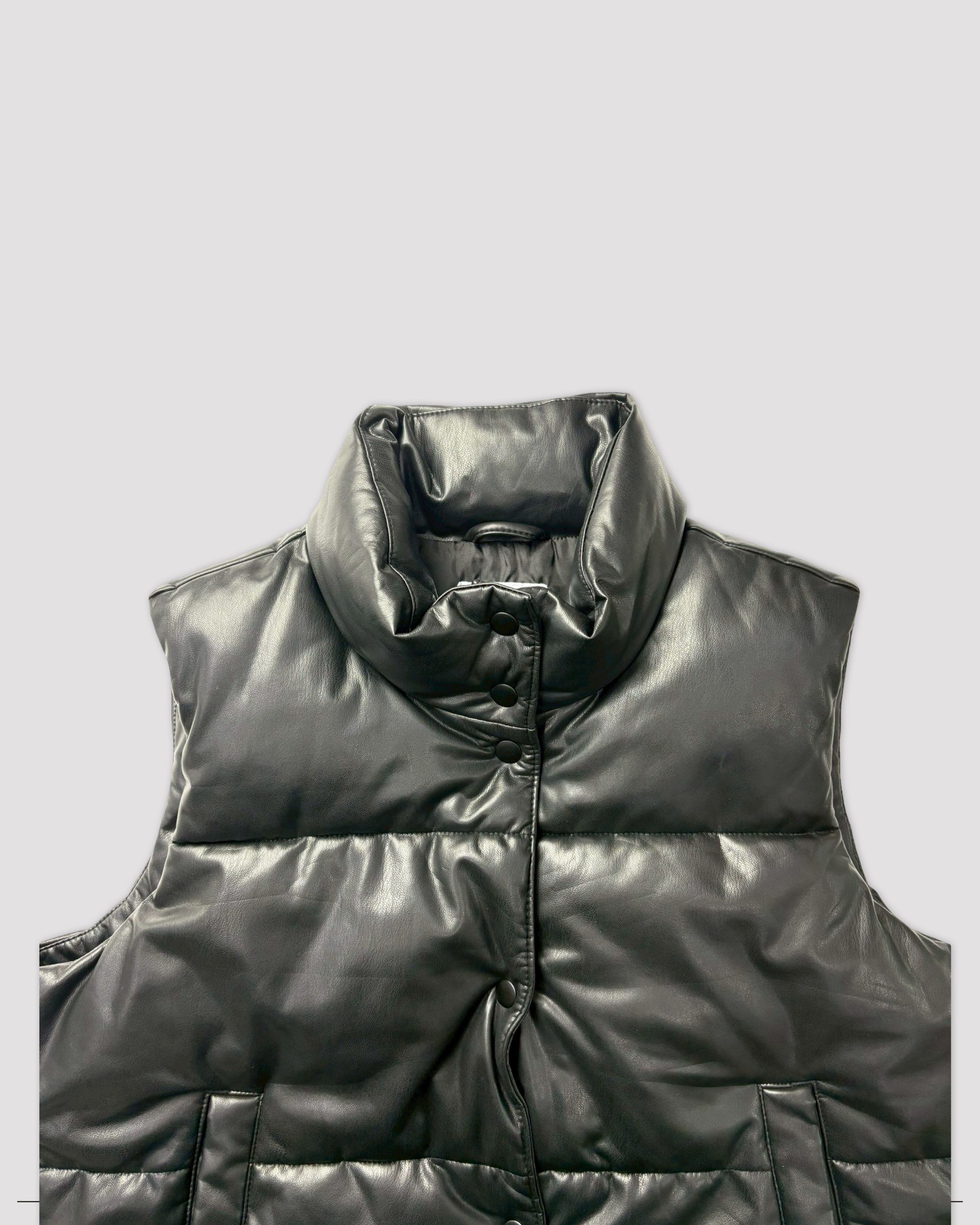 Faux Leather Puffer Snap Vest