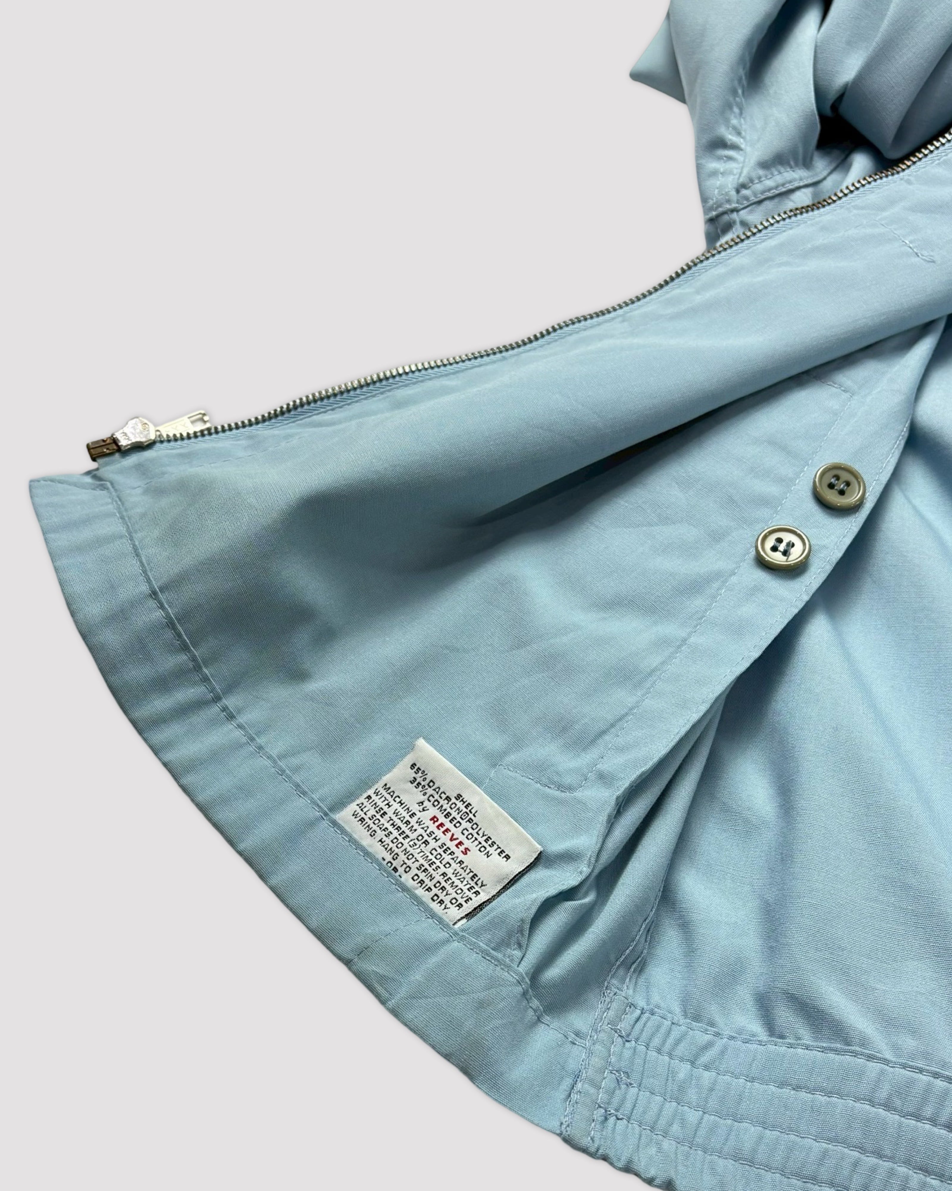軽量性、保温性、耐久性に優れた、ダクロンポリエステル、肌触りの良い、コーマコットンを65/35の比率で使用したreeves社製の生地。