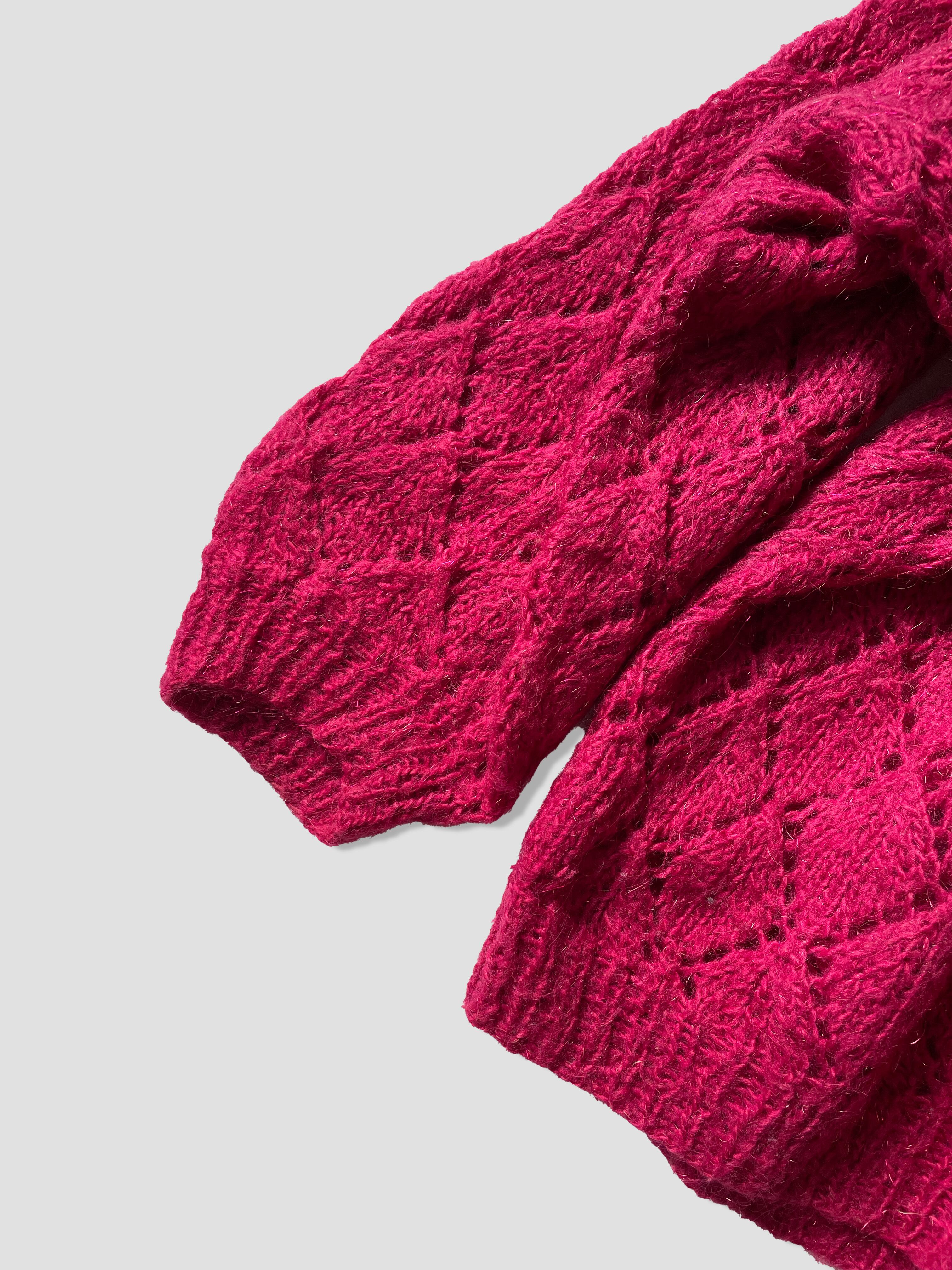 ビビットなピンクにローゲージな編み込み。